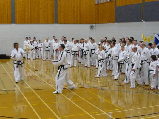 Upon reaching the Dojang, Master Brown and his three guests were greeted by rapturous applause by over 120 students with over 60 black belts and many international instructors. The event was also supported by a number of students from Miss. Catherine Divine of Imperial Scotland. Master Brown proceeded to present his guests with some commemorative plaques and this was followed by a kind and warm welcoming by the fantastic host.