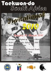 Taekwon-Do South Africa is sadly unable to attend the World Championships in Korea this year due to the fact that the FIFA football world cup is being held in South Africa at the same time and has made traveling at that time very difficult and expensive. We are sad to miss it but hope it is a huge success for our I.T.F.