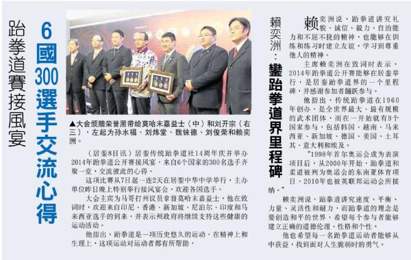 Mr. Patrick Luah, Chairman of the Malaysia Taekwon-Do Championship 2014 Organising Committee; and