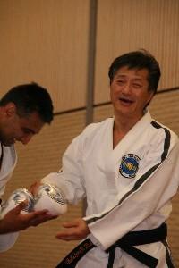 Sunday was open to black belts only. After a short, but powerful, warming up, full of stretching and strength exercises, we started with the patterns. We started with Kwang-Gae, Po-Eun and Gae-Baek. After the break there was another short but intensive warming up and than we continued with Joong-Gun, Toi-Gye, Hwa-Rang, Chung-Mu and Eui-Am. President Choi concluded the seminar with an impressive and memorable speech about the current situation of Taekwon-do in the World. Especially about the developments in the Western world, where people do not always understand the true meaning of ‘Do’. Perhaps this is because the western languages do not have a proper translation for this word. Many people practice Taekwon, but do not always act according to ‘Do’. He explained that there is ‘Do’ in everything you do. In Korea there even is a ‘Do’ of drinking, called Ju Do. Ju is this case can be interpreted as drinking/water/liquid. For somebody, who is aware of the true meaning of ‘Do’ and the tenets of Taekwon-do, it is inconceivable to see that there is so much envy and sometimes even hatred between people who are all share the same interests, hobby or sport.