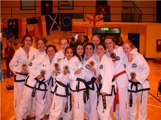 The International Irish Championships has now become Europe’s premier annual Taekwon-Do competition. The foreign contingent was particularly strong in the lady’s sections. Silvia Farigu of Italy was the only black belt to win both tul and matsogi in the entire competition. Her performance of Moon Moo thrilled the large crowd in attendance. Lea Fendt (GTI) of England put up an excellent performance in a large light weight section by beating Ireland’s Laobhaoise Keane in a well contested final. The ladies heavyweight section was dominated by England with Claire Kershaw eventually taking the gold medal.