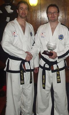 The final presentation was a presentation of appreciation and thanks. IUTF Dublin instructor Jon Mackey presented Mr Dalton with a crystal bowl, finishing the speeches Mr Mackey informed the students how Mr Dalton continuously works towards the betterment of ITF in Ireland and the expansion of the ITF through his chairmanship of the Expansion Committee. More importantly for Mr Mackey however was the guidance and tuition that Mr Dalton has provided since joining the IUTF in 2004. Mr Mackey thanked Mr Dalton for his continued support, citing that Mr Dalton is always at the end of the phone to answer any questions and offer advice, Mackey finished by saying that Mr Dalton was more than just an instructor, but more a mentor and friend. Mr Dalton accepted the crystal and thanked everyone for attending; he also paid special tribute to Mr Plunkett of the GTI who the IUTF have a new and special relationship with. The seminar attendees then applauded Mr Dalton for a really enjoyable days training
