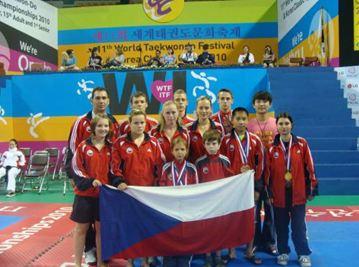 On Sunday, 27-th of June 2010, group of twelve Czech Taekwon-Do ITF Association members went by air from Prague to Amsterdam and continued to Seoul. After landing and check-in, we were welcomed by Lee Jae, student of Chung Cheong University, who took care of our Czech group for the whole stay in Korea. In extremely warm weather, we travelled about 200Km with air-conditioned buss to Cheongju city, the venue of both events. Except Czech group, more than 3000 competitors from England, Argentina, Australia, Bangladesh, Bhutan, Brazil, China, Ethiopia, Filipina, Guam, Holland, Hong Kong, Croatia, India, Indonesia, Iran, Ireland, Italy, Japan, South Korea, Canada, Kazakhstan, Kenya, Malaysia, Morocco, Nepal, New Zealand, Nigeria, Germany, Poland, Russia, Greece, Northern Ireland, Singapore, Slovenia, Scotland, Sweden, Spain, Taiwan, Thailand, Uruguay, USA, Uzbekistan and Wels arrived.
