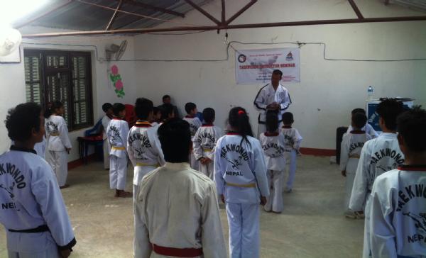International Instructor and A Class Referee Mr. Laxman Basnet (V Degree) Conduct the 1 day Taekwondo Seminar in Hetauda on 8th Feb 2014, organized by National Taekwondo Union (WTF) District Executive Committee Makwanpur. Mr. Basnet focuses ITF basic training to the Taekwondo player. Mr. Raghu Nath Basnet(II Degree) was assistance to Mr. Basnet in the seminar focuses with WI are one.