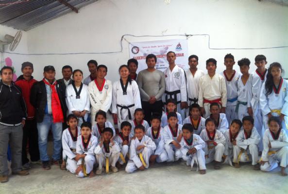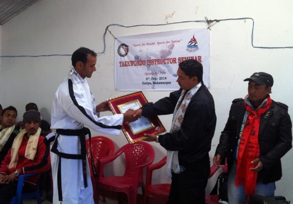 All total 36 players and instructor are participated in the seminar. And Seminar coordinator was Mr Rakesh Kumar Rai International Instructor from WTF. And Mr Basnet Honor by the Chief Guest Mr. Sunil Giri Member of District Sports Development committee. After seminar Chief Guest Mr. Giri, Mr. Rakesh Kumar Rai, Madan Shrestha Member of National TKD Union gives speech about Taekwondo and discipline.