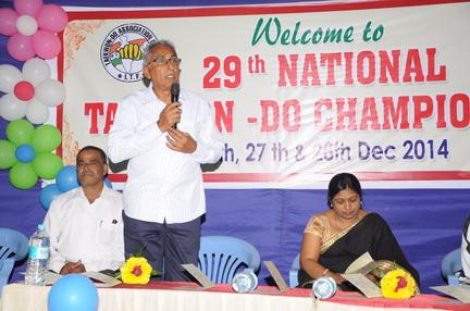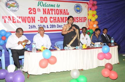 We successfully completed 29th National Taekwon-do Championship on 26th to 28th December, 2014. Near about 340 players are participated in the above said Championship from various states. On 26th evening 6.30 P.M our Chief Guest Hon’ble Mahila District and Sessions Judge Smt. Nirma Geethamba Started the Championship along with our Chief Guest Our Association President Master B.V.Ramanaiah 7th Dan also present there. And on 28th December, 2014
