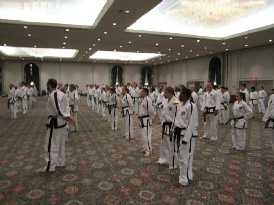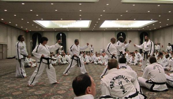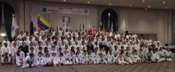 On Saturday the seminar started at 9:30am with over 200 black belts in attendance. Pres. Choi and the head delegation were welcomed with a huge applause. Master Rai welcomed everyone and thanked everyone for their continued support to Taekwon-Do. Pres. Choi addressed the participants and thanked everyone for attending. Master Rai then started the warm up which was both physical and technical. Pres. Choi was in great spirits and led the seminar for the course of the two days stressing correct techniques and power generation. The course was spectacular with many grandmasters and masters including, Grandmaster Galarraga, Grandmaster Nicholls, Grandmaster Tompkins, Master Maidana and Master Howard also taking turns teaching the participants.