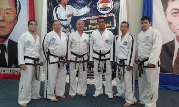 On September 12th, in Foz do Iguaçu, Paraná, in the event hall of the Hotel Foz do Iguaçu, has taken place a exam for higher degrees, conducted by Master Parm Rai, VIII Degree, and under the presence of Masters: Hector Soto, VIII Degree, Alejandro Soto, VII Degree, both from Argentina, and Tanei Campos, VII Degree, from Brazil. The examining board conferred the following degrees: IV Degree to Mrs. Sandra Campos, from Santos (São Paulo / Brazil), IV Degree to Jeraim Collet, from Lages (Santa Catarina / Brazil), IV Degree to Eulalio Garcia, from Foz do Iguaçu (Parana / Brazil) and V Degree to Eduardo Godoi, from Louveira (São Paulo / Brazil). Sabumnim Maximiliano Quevedo, from Rio Grande do Sul, Brazil, presented to the examiners board for degree conference in ITF, demonstrating that he has been practicing for years the traditional art and seeking his entry on ITF, properly earning his degree. At the end of the night there was a special dinner with all the new graduates and the heads of Associations.