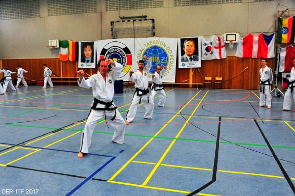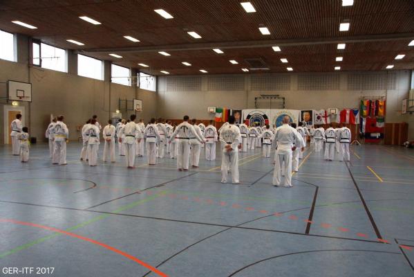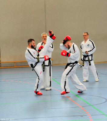 The third and final part of the day was black belt patterns practice. GM Nicholls assisted by the other senior grades and Masters took the different degrees to work on the relevant patterns. To bring the class to a close GM Nicholls brought the participants from 6th degree Tong-Il down trough the patterns 5th,4th,3rd,2nd and 1st degree patterns all the way to Do-San.