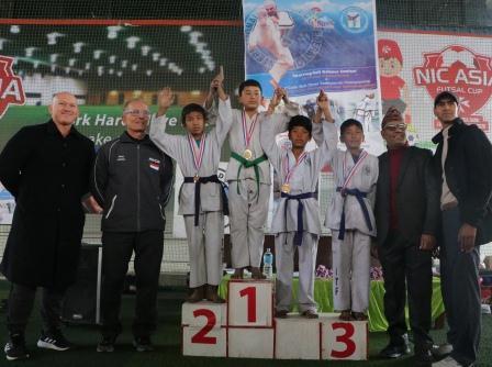 Many special guests were in attendance including the Chief Guest, the Honorable Ganesh Prasad Timalsina, Chairman of the National Assembly of Nepal, along with special guest Master Muleta and Arie Hoogandooran from Netherlands. Also in attendance was Guest Honorary Member Nepal Olympic committee and President of the Sports for All commission, Mr.Bishnu Gopal Shrestha, Adviser of Taekwon-Do ITF Nepal and Famous Nepal identity, Ang Temba Sherpa . Turkish Airlines country Manager, Mr. Abdullaha gave out three gift hampers to three gold medalists.