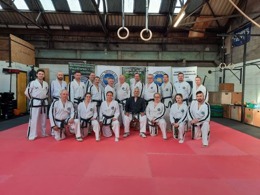 The 6-hour session was spent covering patterns Ul-Ji Tul to Tong Il Tul in great detail. GM Nicholls created a very open, knowledge sharing atmosphere, where every question that was asked from any of the attendees was answered thoroughly. Grand Master Nicholls explained how the 9 training secrets of Taekwon-Do should be applied when performing Taekwon-Do techniques when generating maximum power. Kicking drills were performed detailing the importance of correct knee chamber to execute kicks to full potential while also highlighting the correct foot positions and angles.The session concluded with all Gup Tuls covered from Choong Moo to Chon Ji.